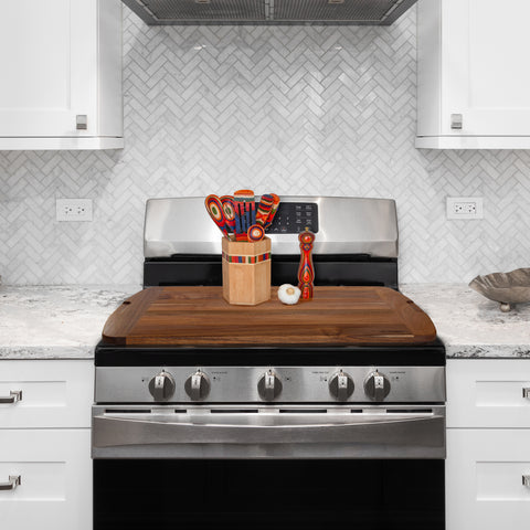 Have a small kitchen? Add up to 30 inches of counter space with our 600 SI Large Two-Tone Board or our Rock & Branch® 600 SI Large Acacia Wood Cutting Board. Place either of these large carving boards over your stove-top (make sure it’s off) or sink to add more space for food prep or counter space.