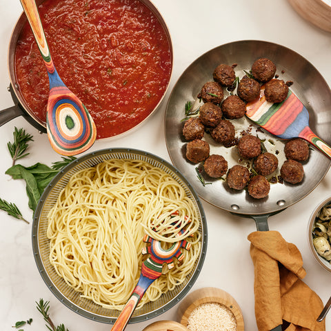 Non-stick surfaces work at their best when they are scratch-free. When scratches occur, that’s when the food begins to stick and suddenly your non-stick pan is not so non-stick. This also makes your non-stick pan more difficult to clean. Wood and bamboo cooking utensils are gentler on your non-stick cookware, making your life easier when it comes to cooking and cleaning but also adding to the longevity of your favorite non-stick pots and pans.